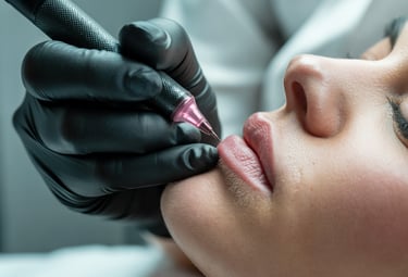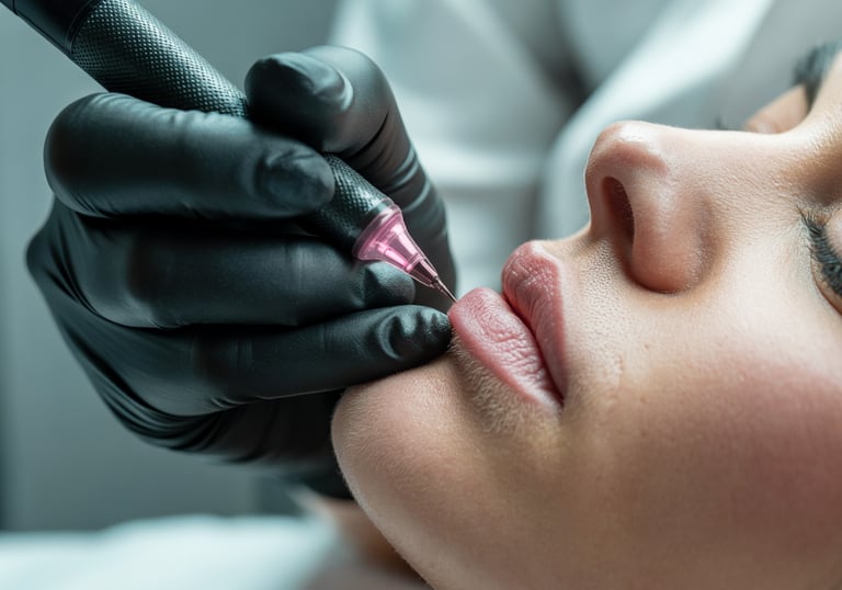 Lip blush tetoválás, ami élénkíti az ajkak természetes színét.